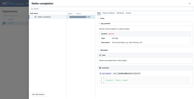 MLflow integration with LiteLLM support tracking tool calls in addition to the messages.
